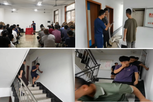 首先,汪隊(duì)長(zhǎng)講解了滅火器、消防栓等消防器材的基礎(chǔ)知識(shí)、注意事項(xiàng),并做了使用演示。接著,模擬公司辦公大樓出現(xiàn)火災(zāi)險(xiǎn)情時(shí)的滅火處置和人員疏散演練。